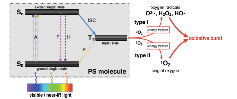 Le procédé est considéré comme indolore et sans effets secondaires, car l’oxygène singulet ne se diffuse que sur 0,1 µm et a une durée de vie extrêmement courte. »